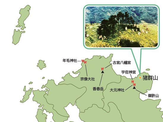 大分県国東半島の猪群山にある謎の巨大ストーンサークル。いにしえの昔より地元の人たちに「おみせん」として崇め奉られている、女人禁制の聖域である。卑弥呼の墓説やゾロアスター教の聖地説などもある謎の遺跡である。